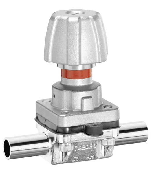 Typ 602 Membranventil, manuell betätigt, Edelstahl-Handrad, optische Stellungsanzeige