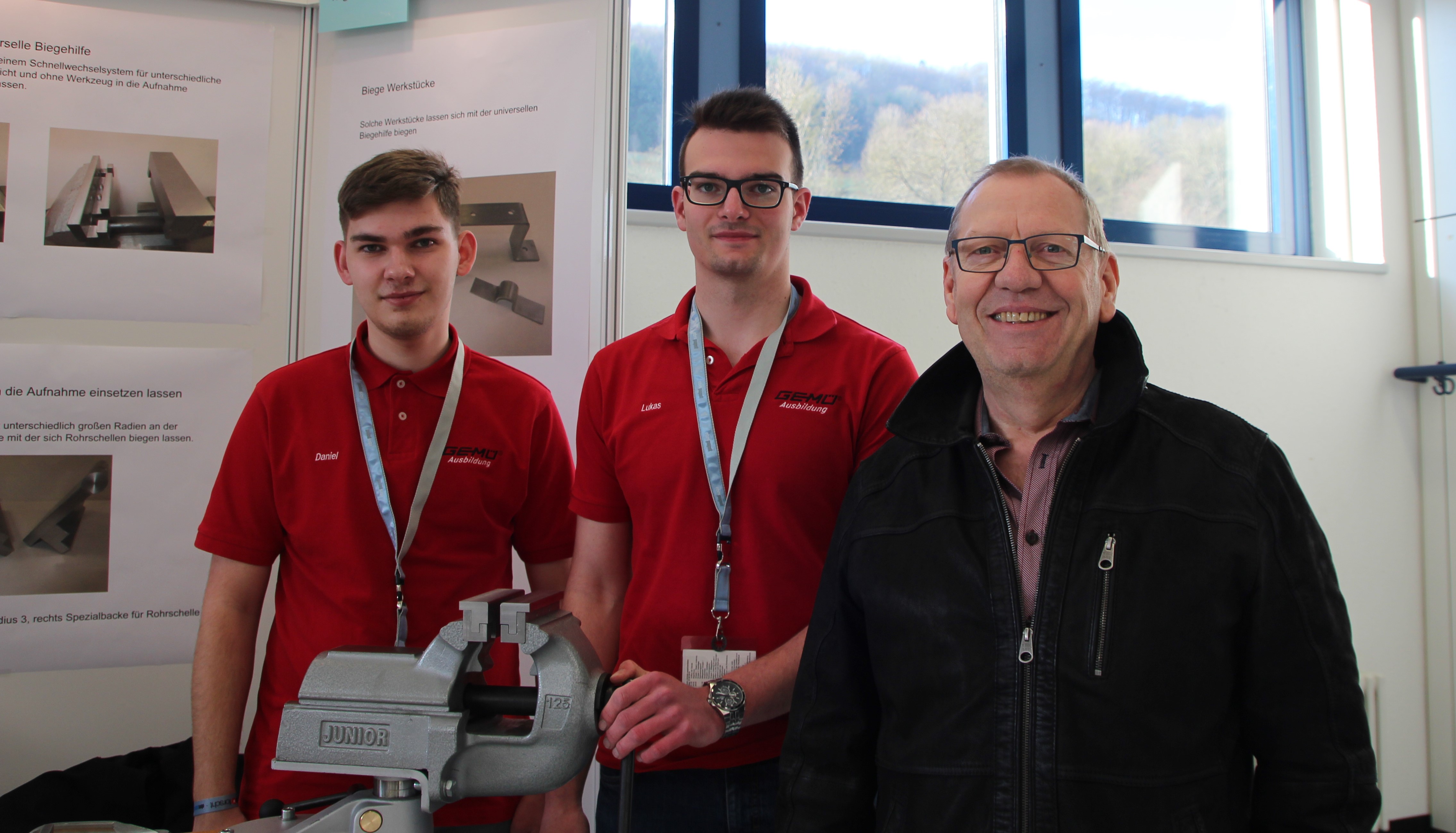 Die Idee zu dem Projekt, das von ihrem GEMÜ Ausbilder Wolfgang Wick betreut wurde, entwickelten die beiden Auszubildenden weil sich beim Biegen von Werkstücken mit einfachen Biegeklötzen immer wieder Werkstücke aus dem Schraubstock lösten. Um eine mögliche Verletzungsgefahr bereits im Vorfeld zu vermeiden, entwickelten die beiden Biegebacken für den Schraubstock, die für unterschiedliche Materialien und Radien ausgelegt sind. Damit werden die Biegebacken den diversen Anforderungen unterschiedlichster Metallwerkstücke gerecht und tragen maßgeblich zur Sicherheit bei der Bearbeitung bei.