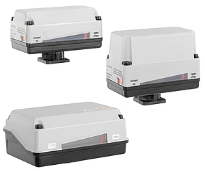 Die elektromotorischen Schwenkantriebe sind in Ausführungen mit 6 Nm (Antriebsausführung Code 3006) und 15 Nm (Antriebsausführung Code 3015) erhältlich. Code 3006 verfügt über eine Stellzeit von 4 Sekunden und kann mit 12 V DC, 24 V DC, 12 V AC (50 – 60 Hz) oder 24 V AC (50 – 60 Hz) betrieben werden. Code 3015 hat eine Stellzeit von 15 Sekunden und kann nur mit 12 V DC oder 24 V DC betrieben werden.