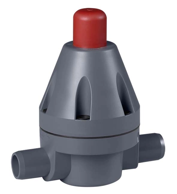 Das Druckhalteventil GEMÜ N186 sichert in verfahrenstechnischen Anlagen den konstanten Gegendruck. Steigt der Eingangsdruck über den voreingestellten Wert, wird die Membran gegen die Federkraft angehoben. Das Ventil öffnet und der überschüssige Druck kann in die Abgangsleitung entweichen. Lässt der Druck auf der Eingangsseite nach, schließt das Ventil, indem die Federkraft die Membran auf den Dichtsitz drückt. Die Federkraft kann mittels einer Stellschraube je nach Bedarf eingestellt und mit der Kontermutter gesichert werden.
