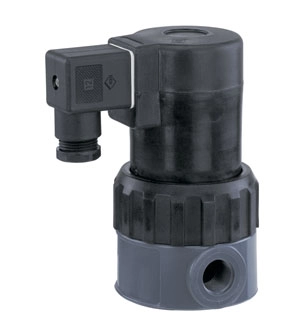 The GEMÜ 202 directly controlled 2/2-way solenoid valve has a completely plastic encapsulated coil. The armature is sealed by a bellows made of PTFE backed by an additional safety diaphragm. The valve body is available in various materials and with a straight through or angle valve body design.
