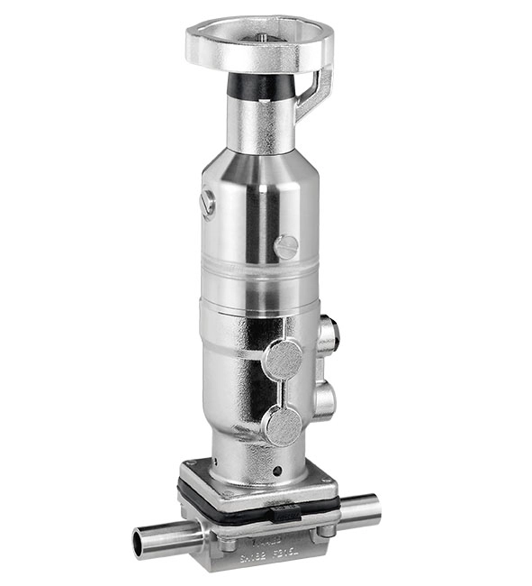 Das 2/2-Wege-Membranventil verfügt über einen Edelstahl-Kolbenantrieb und wird pneumatisch betätigt. Das Ventil ist für den Einsatz in sterilen Anwendungsbereichen konzipiert. Alle Antriebsteile sind aus Edelstahl (ausgenommen Dichtelemente). Bei den Membrangrößen 80 und 100 bestehen die Druckfedern aus epoxy-beschichtetem Federstahl. Als Steuerfunktion stehen „Federkraft geschlossen (NC)“, „Federkraft geöffnet (NO)“ und „beidseitig angesteuert (DA)“ zur Verfügung. Eine optische Stellungsanzeige ist serienmäßig integriert.