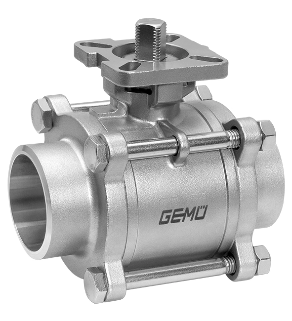 The GEMÜ B42 3-piece 2/2-way metal ball valve is pneumatically operated. The seat seal is made of PTFE.