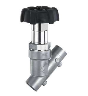 The 2/2-way angle seat globe valve has an ergonomically designed plastic handwheel and is manually operated. A wiper ring fitted in front of the gland packing protects the seal against contamination and damage. A wiper ring fitted in front of the gland packing protects the seal against contamination and damage.