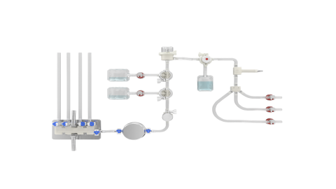 The precise preparation of buffers and media is crucial for consistent process conditions downstream. This involves the controlled mixing, distribution and provision of various liquids – under strict sterile conditions. Minimal dead space, low hold-up volumes and precise control of media conditions are essential.