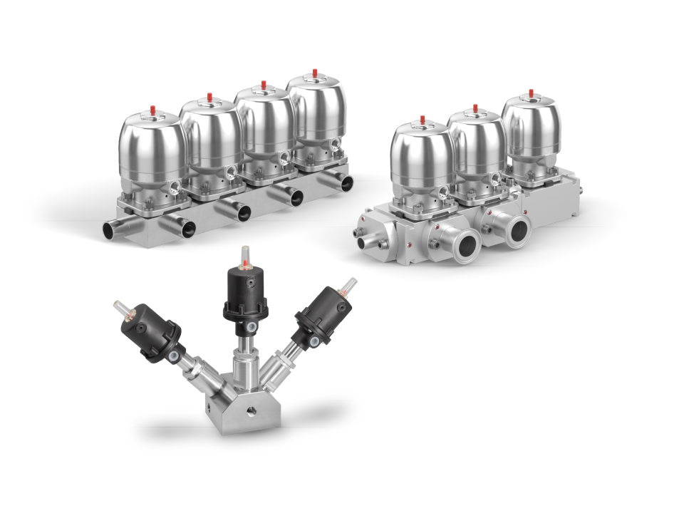 Multiport-block valves made of stainless steel cover a wide range of applications. Depending on the process requirements, the shut-off function can be implemented either via a diaphragm, PD or plate seal.