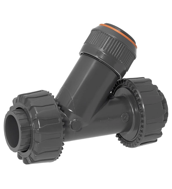 The check valve comprises an angle seat globe valve body made of plastic (either PVC-U or PP-H). The sealing elements are manufactured from EPDM and FPM.