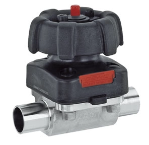 Type 671 Diaphragm valve, manually operated, plastic handwheel, plastic distance piece, optical position indicator