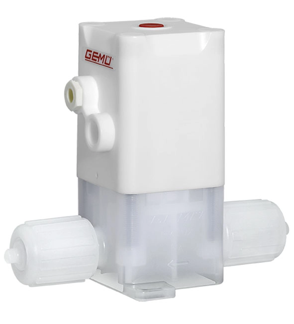 The GEMÜ C50 iComLine ultra-pure 2/2-way plastic diaphragm globe valve has a pneumatic actuator. All media wetted parts are made of PFA or PTFE. The external actuator parts are made of PVDF. An integral optical position indicator is standard. In addition to 2/2-way valve bodies, customized multi-port valve block solutions can be produced.