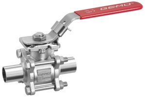 La vanne à boisseau sphérique 2/2 voies en trois parties GEMÜ B24 est à commande manuelle. L'alliage d'inox 1.4435 (la composition du matériau correspond à 316L) utilisé pour le corps de la vanne à boisseau, avec un faible taux de ferrite delta < 3 %, est spécialement conçu pour les applications d'alimentation dans les secteurs de l'industrie pharmaceutique, de la transformation des produits alimentaires et de la biotechnologie, par ex. pour le traitement de l'eau ou la production de vapeur. Les joints sont uniquement fabriqués en plastiques conformes aux exigences de la FDA, de l'USP Class VI et du règlement (UE) n° 10/2011.