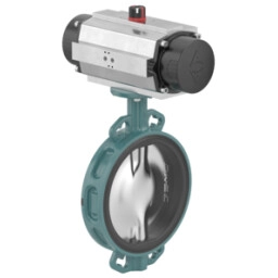The soft seated metal butterfly valve has a metal actuator and is pneumatically operated. Normally Closed, Normally Open and Double Acting control functions are available. Various pneumatic actuators are available. The butterfly valve is available in nominal sizes DN 25 to 600 and in standard installation lengths ISO 5752/20 | EN 558-1/20 | API 609 category A (DIN 3202 K1) in wafer, lug and U section body versions.