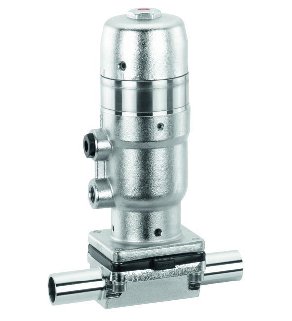Type 660 Diaphragm valve, pneumatically operated, stainless steel piston actuator, stroke limiter and seal adjuster