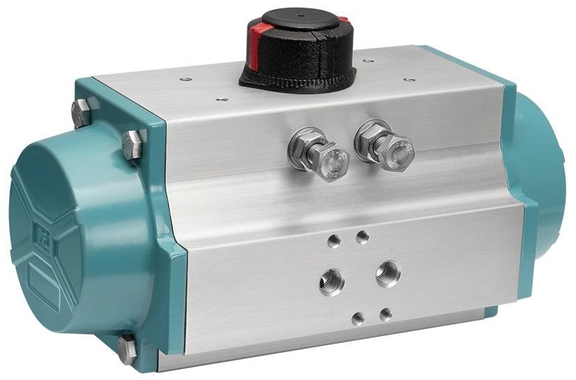 The pneumatic basic actuator is a single acting, clockwise rotation quarter turn actuator for Open/Close applications. With its standardized connection for pilot valve, position feedback and flanged connection according to ISO 5211, it is suitable for mounting to butterfly valves and ball valves.