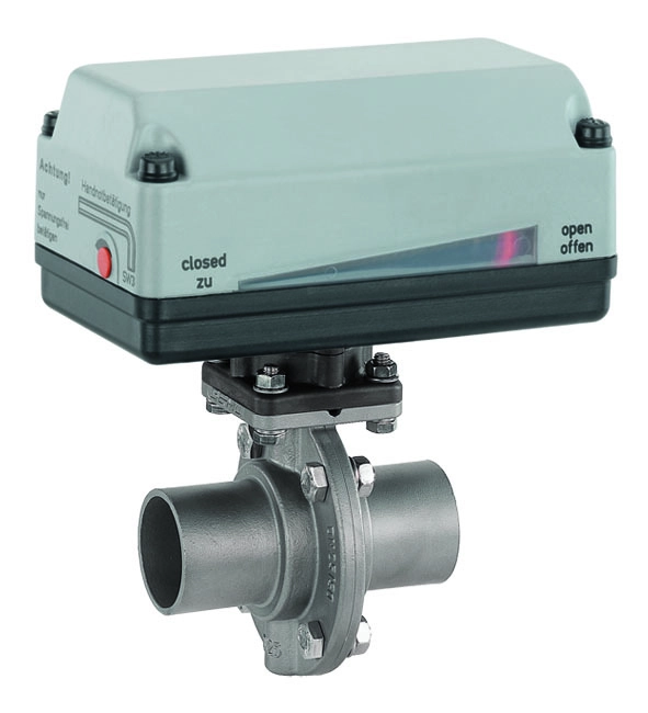 The soft seated butterfly valve made from stainless steel or brass is motorized. A manual override and an optical position indicator are integrated as standard. With its rounded and polished disc edges, the butterfly valve is optimized for frequent cycle duties. The surface of the butterfly valve can be further finished.