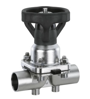 Type: 653: Diaphragm valve, manually operated, plastic handwheel, stainless steel distance piece electropolished, optical position indicator