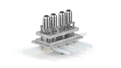 Cette solution s'accompagne d'une réduction des zones mortes dans l'application ainsi que d'un volume intrinsèque moins élevé en comparaison avec des vannes individuelles, ce qui se traduit par une perte de produit minimale.