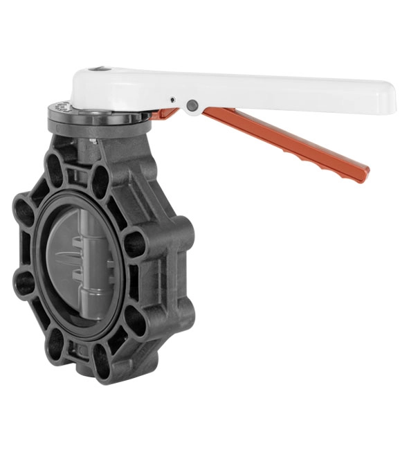 The GEMÜ D457 soft seated butterfly valve is manually operated. It has a metal hand lever or gearbox depending on customer requirements. The butterfly valve is available in nominal sizes DN 50–300 and has a wafer body version. The hand lever can be adjusted in seven positions (each at 55°) and is equipped with a hole for fitting a safety lock to prevent unwanted changes in position.