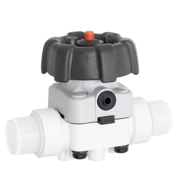 Diaphragm valve, manually operated, plastic handwheel, optical position indicator