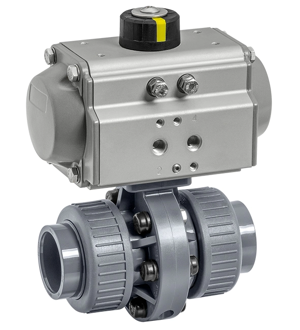 Die zentrische Absperrklappe wird pneumatisch betätigt. Es stehen die Steuerfunktionen „Federkraft geschlossen“ und „Federkraft geöffnet“ zur Verfügung. Der Ventilkörper ist in Kunststoff-Ausführung erhältlich.