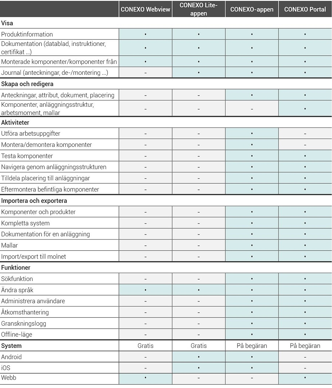 Översikt över CONEXO-systemet